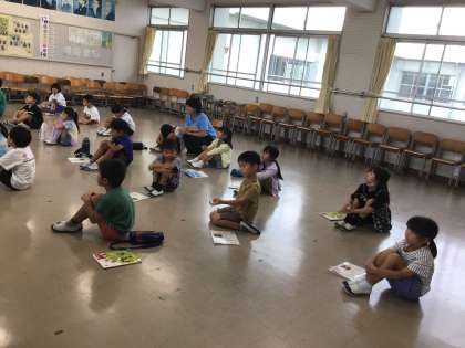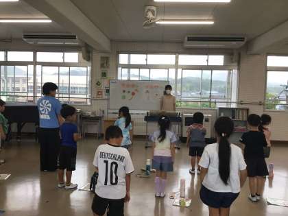 1の2 音楽です。 授業に終わりにお邪魔しました。 振り返りをして終わりの挨拶です。