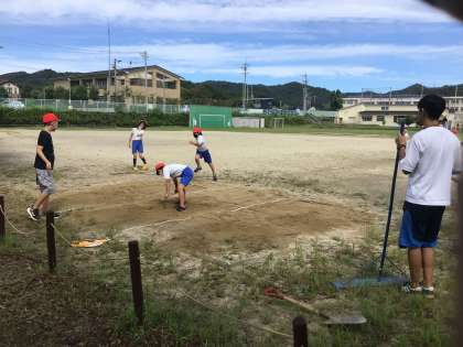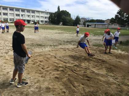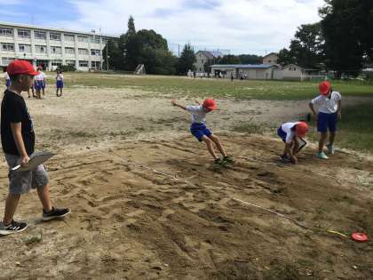 5の1 体育です。 走り幅跳びです。 舞い上がれ!