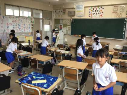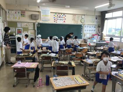 1の1 給食の準備です。 「給食の準備に7分24秒でできたよ」 すばらしいね