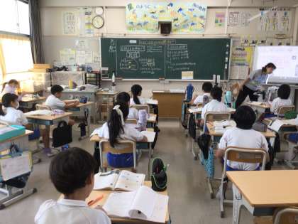9月13日 その8 公開日 2023/09/13 更新日 2023/09/13 校長室から 4の2 算数です。 1と0、1 0,01 0,001の関係は? 0,01は1の何分の1? 1は0,001の何倍? 校長 4年