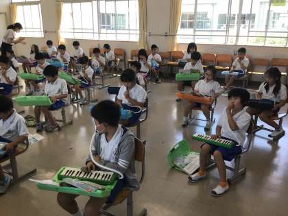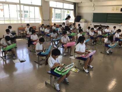 9月15日 その11 公開日 2023/09/15 更新日 2023/09/15 校長室から 2の1 音楽です。 「ぷっかりくじら」 鍵盤ハーモニカで弾いてみるよ! 指の使い方ばっちりだね! 校長 2年 特別支援学級