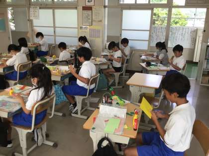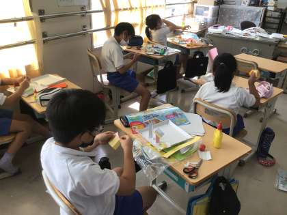 4の2 図工です。 「ころころがーれ」 ビー玉をどんなふうに転がそうかな。