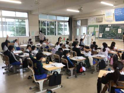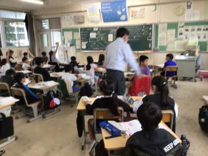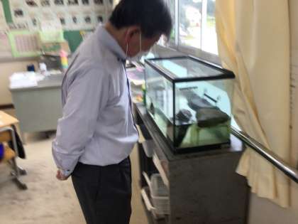 2の1 道徳です。 教育長先生が水槽の中の亀を見つけました。 「立派な亀だな」