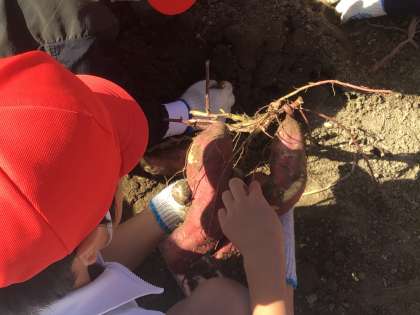 10月6日 その4 公開日 2023/10/06 更新日 2023/10/06 校長室から 1の1 芋掘りです。 さつまいもはどんな料理の仕方がある? 大学芋,焼き芋,天ぷら,味噌汁の具、、、 芋ほり名人の赤川さんいつもありがとうございます。 校長 1年