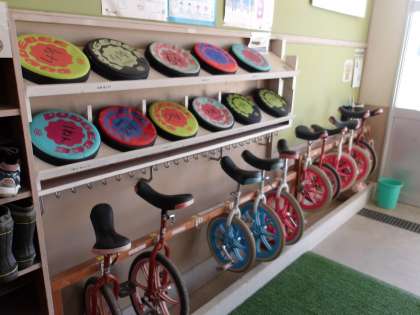 昇降口の遊具です。 きれいに並んでいて、感心!