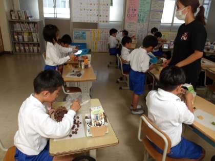 10月19日 その1 公開日 2023/10/19 更新日 2023/10/19 校長室から 1の1 生活です。 はっぱやきのみをならべてあそぼう 何に見えるか? 何をしているのかな? 紙に並べてたタブレットで写真を撮ろう! 校長 1年 特別支援学級