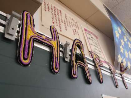 10月25日 その4 公開日 2023/10/25 更新日 2023/10/25 校長室から 6の1の教室の飾りです。 ワクワクしてきそうな飾りです。 なんと、手作り! 毛糸で表現だね。色もよく考えたね。 イベント会社(係活動)の子が作りました。 校長 6年