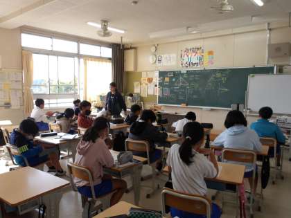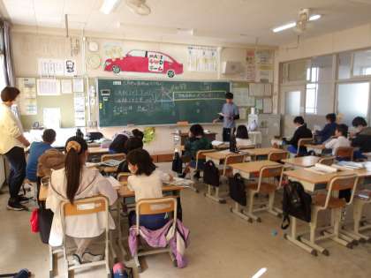 10月25日 その5 公開日 2023/10/25 更新日 2023/10/25 校長室から 5年生 算数です。 少人数指導です。 三角形の面積はどう考えるの? 底辺×高さ÷2 説明できるね? 校長 5年