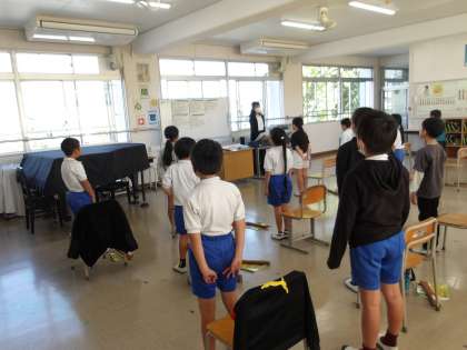 3の2 音楽です。 今月の歌「光をめざして」 きれいな歌声です。 表情もとってもいい!