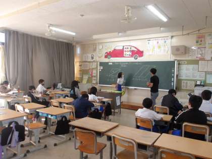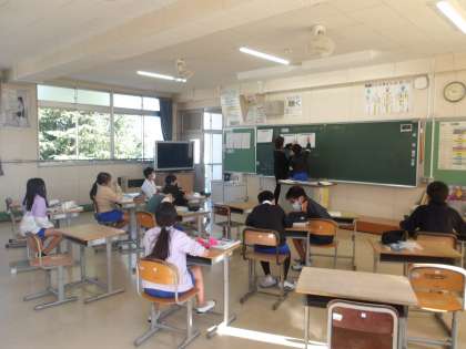 5年生 算数の少人数指導です。 三角形や平行四辺形の面積について勉強しています。
