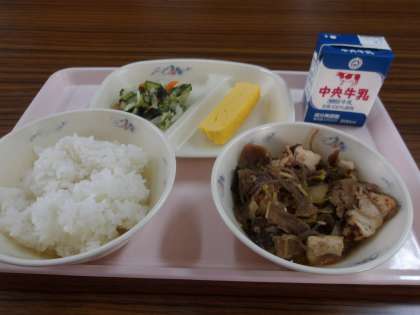 今日の給食です。 すき焼きだよ。