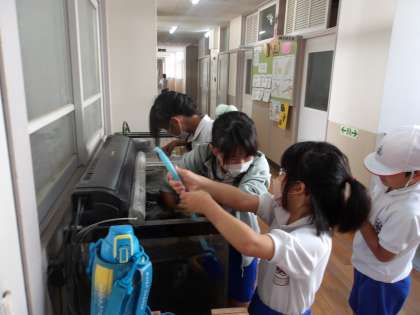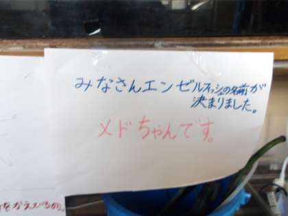11月1日 その8 公開日 2023/11/01 更新日 2023/11/01 校長室から 4年生の子が、週に一回掃除してくれているんだね。 水槽がきれいです。 「メド」ちゃんも、喜んでいるね。 水槽の中のお魚の名前です。公募で決まりました。 校長