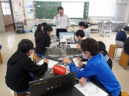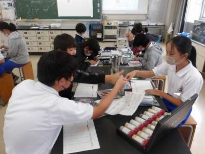 11月7日 その1 公開日 2023/11/07 更新日 2023/11/07 校長室から 6の1 理科です。 地層の勉強です。 これ、一本のボウリング調査で得られた砂です。 トヨタ紡織の工場を作るときのものだそうです。 すごいね。18種類。 少なくとも18回の堆積があったということですね。 火山灰も含まれているのかな? 粒をよく見てみたいですね。 校長 6年