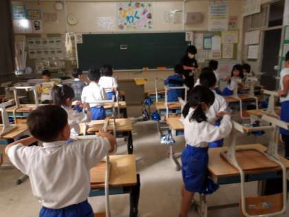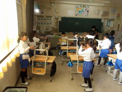 11月8日 その2 公開日 2023/11/08 更新日 2023/11/08 校長室から 1の2 何をしているのかな。 椅子の足の裏に布テープを貼っています。 明日は予行練習で、椅子を外に出すからですね。 校長 1年