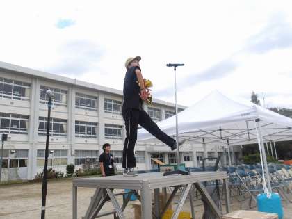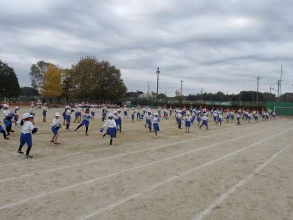上:中学年の表現 中:低学年の表現 下:指揮式台の上で大きく踊る永井先生