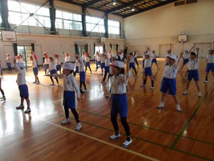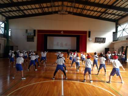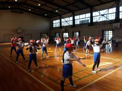 3年生 体育です。 ソーラン節ですね。 早い動きですが、ついてきています。