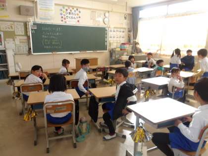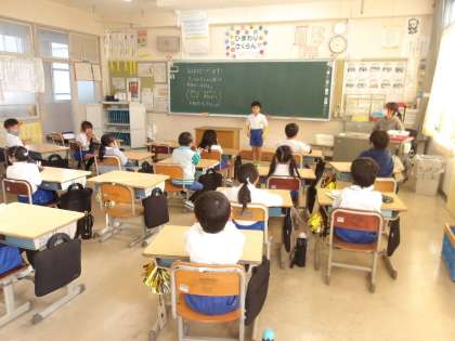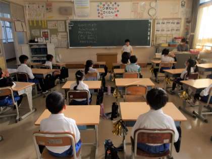 1の1 朝の会におじゃましました。 スピーチをやっていますね。 がんばっていますね。