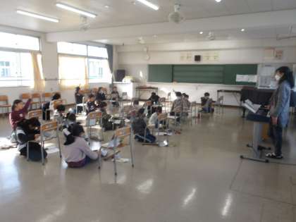 11月30日 その6 公開日 2023/11/30 更新日 2023/11/30 校長室から 4の2 音楽です。 鑑賞です。 サン サーンス作曲 動物の謝肉祭より「白鳥」「「堂々たるライオンの行進」 曲から感じる色は? 校長 4年