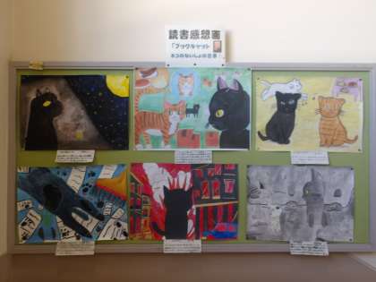 12月6日 その3 公開日 2023/12/06 更新日 2023/12/06 校長室から 廊下作品。 6年 読書感想画「コカチン」 5年 読書感想画「ブックキャット ネコのないしょの仕事」 校長 5年 6年