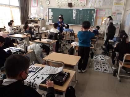 4の1 書写です。 「明るい声」 縦線、横線に気を付けて!