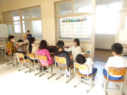 12月20日 その1 公開日 2023/12/20 更新日 2023/12/20 校長室から やまもも学級です。 研究授業です。 道徳の勉強だよ。 やさしさ・思いやりにふれたよ。 成田先生は、日常の学校生活から一人一人の「やさしさ」を見つけて教えてくれたよ。 ハンドベルの練習だ。きれいな音。 校長 特別支援学級