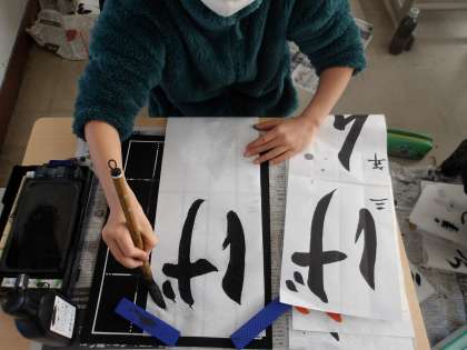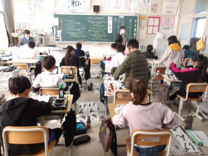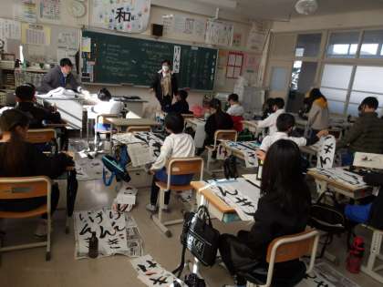 3の1 書き初め練習です。 3年生は、毛筆デビューですが、上手にかけています。
