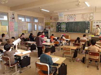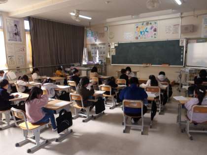 書き初め大会 みんな真剣だよ!