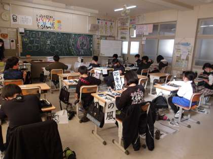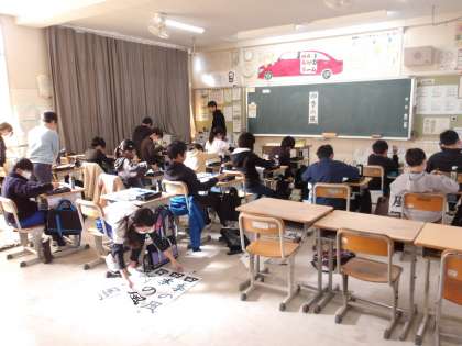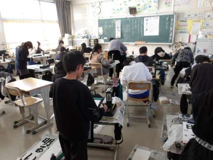 書き初め大会 みんな真剣! 4の1 5の1 5の2