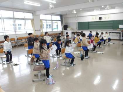 1月10日 その4 公開日 2024/01/10 更新日 2024/01/10 校長室から 1の1 音楽です。 『あいあい』 「あいあい」「あいあい」半分に分かれて歌っています。 自分が歌うときは、立つよ! 「おちゃらか」が始まりました。 ピアノの音で、動きが決まっているんだね。 楽しいね。 校長 1年 特別支援学級