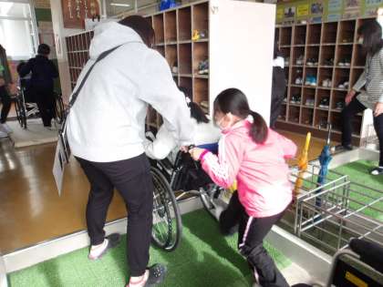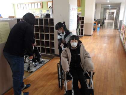 1月11日 その1 公開日 2024/01/11 更新日 2024/01/11 校長室から 4の1 総合です 障がい者理解のための実践教室です。 ほんの少しの段差でも難しいね。 校長 4年 特別支援学級