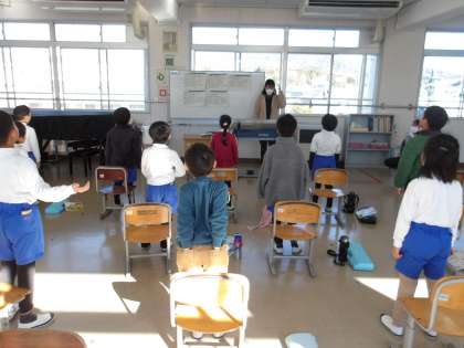 1の1 音楽です。 「光をめざして」 今月の歌です。 1年生なのに、歌声が素敵!