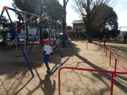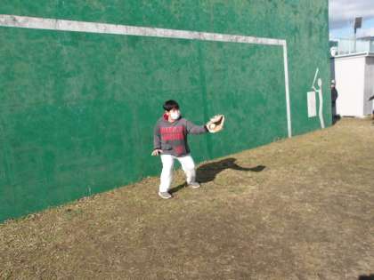 大谷さんのグローブでキャッチボール! 捕れた! 新しい遊具だよ。 どんな遊具がるかな。