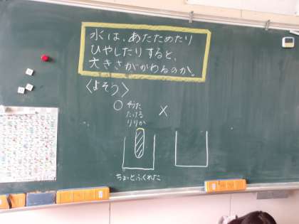 1月25日 その3 公開日 2024/01/25 更新日 2024/01/25 校長室から やまもも学級です。 理科の実験だよ。 水は冷やしたり温めたりすると、大きさが変わるのかな? 実験だよ! どうなるのかな? 予想が当たるかな? 校長 特別支援学級