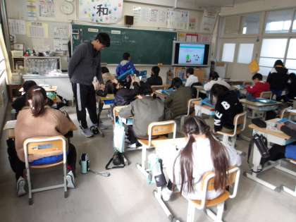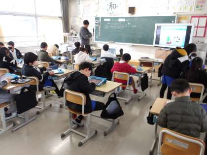 1月25日 その4 公開日 2024/01/25 更新日 2024/01/25 校長室から 3の1 英語です。 greeting card をつくろう。 どんなカードにする? タブレットで作っていますね。 校長 3年