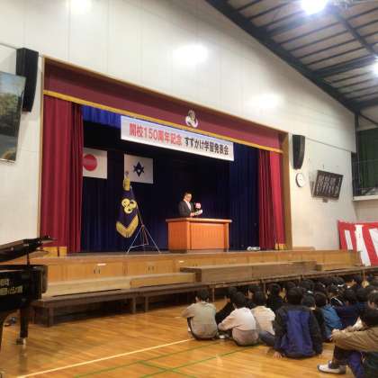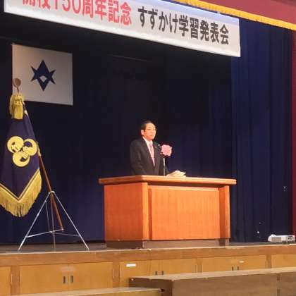 2月17日 その1 公開日 2024/02/17 更新日 2024/02/17 校長室から 150周年記念式典です。 市議会議員 羽根田利明様 PTA会長 福井裕樹様 から 祝辞をいただきました。 あろがとうございました。 記念動画です。 子どもたちの歓声が予想以上でした。 校長 行事