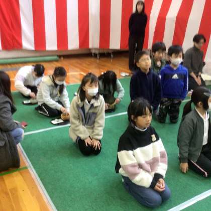 2月17日 その7 公開日 2024/02/17 更新日 2024/02/17 校長室から 茶道クラブの子が 来賓の皆様にお茶のおもてなしだよ! わたしもいただきました。 「いつも見守ってくださってありがとうございます」 もったいない言葉です。 美味しくいただきました。 校長 クラブ 行事