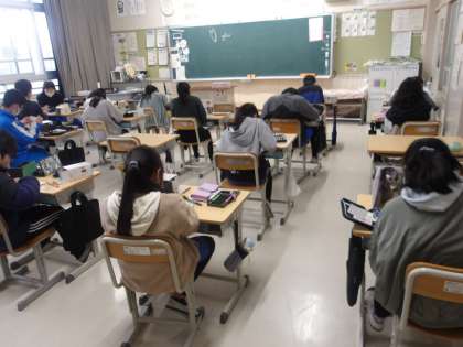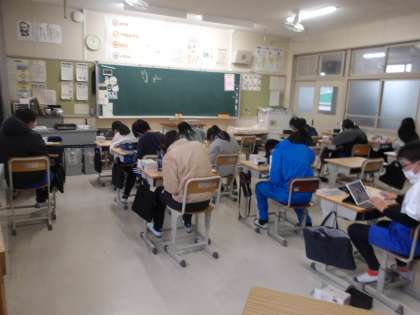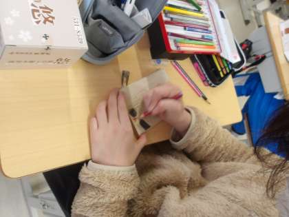6の2 図工です。 卒業制作です。 オルゴール箱を作っています。 みんな、黙々、集中しています。
