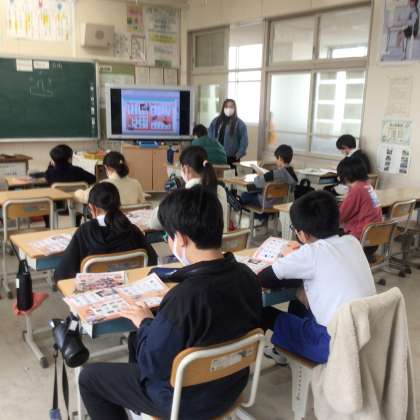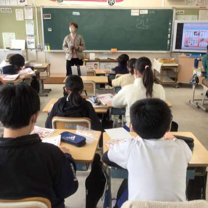 先生が単語のスペルをアルファベットを言います。