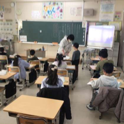 3月7日 その2 公開日 2024/03/07 更新日 2024/03/07 校長室から 1の2 国語です。 スイミー 自分の好きな場面を選んでいます。 その場面音読をするのでしょう。 黒板には「なりきれるとすてき」って書いてあります。 校長 1年