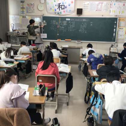 3の1 算数です。 3桁✖️2桁の筆算の仕方の勉強です。 計算の練習が始まりました。