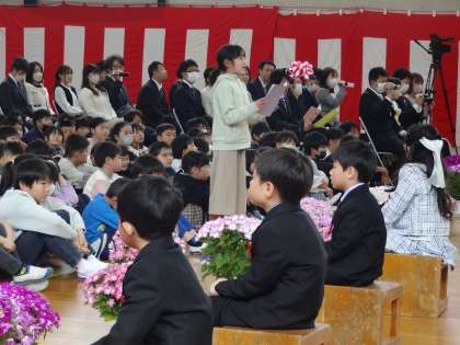 在校生も全学年参加しよ。 「在校生お祝いの言葉」すてきでした。