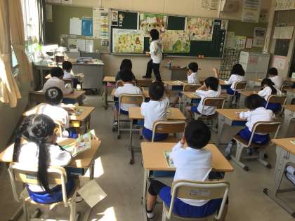 4月12日 その3 公開日 2024/04/12 更新日 2024/04/12 校長室から 1の2 国語です。 楽しく音読しよう。 すきな動物になったつもリで体を動かそうか! 太鼓みたいに音で合わせてみようか! 校長 1年