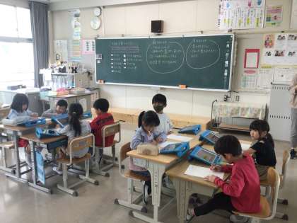 4月18日 その5 公開日 2024/04/18 更新日 2024/04/18 校長室から 2の1 生活です。 見つけた春を紹介しよう。 タブレットにおさめた写真を見ながら まとめています。 きれいな花の写真が多いようです。 校長 2年