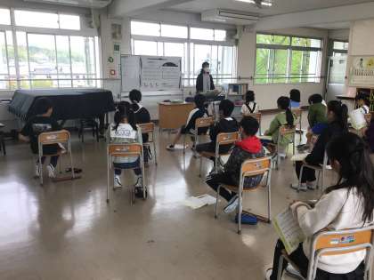 4月18日 その7 公開日 2024/04/18 更新日 2024/04/18 校長室から 5の2 音楽です。 「すてきな一歩」 この歌の初回かな。 音どりをしたよ。さあ,歌ってみようか! 校長 5年 特別支援学級
