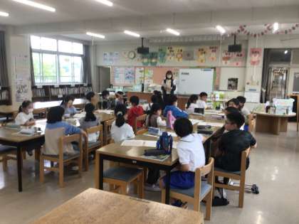 4月23日 その1 公開日 2024/04/23 更新日 2024/04/23 校長室から 5の2 図書館利用の仕方の勉強です。 学校図書館司書の石川先生が教えてくれたよ。 わからないことの調べ方についてです。 どんどん活用していこうね! 校長 5年