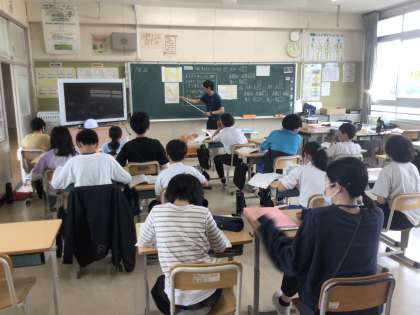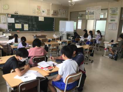 6年 算数です。 対象な図形について勉強しています。 少人数指導です。
