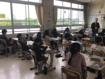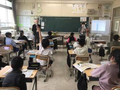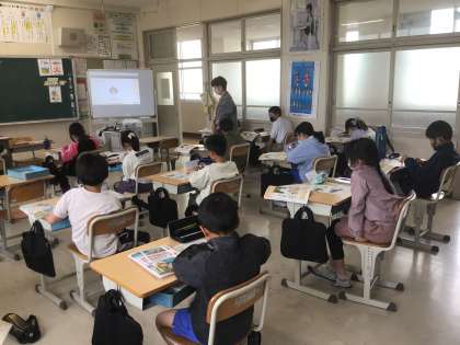 4月23日 その7 公開日 2024/04/23 更新日 2024/04/23 校長室から 5の1 英語です。 How do you spell your name? 会話を聞き取り、それ会話に合う場面を答えます。 英語をよく聞き取れているよ。 今年のALT の先生はブライアン先生! 校長 5年