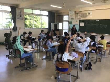 4月25日 その7 公開日 2024/04/25 更新日 2024/04/25 校長室から 5年生 算数です。 少人数指導です。 1mの重さが3kgの鉄の棒があります。 この鉄の棒0、8mの重さは何kgでしょう? 少数のかけ算の勉強ですね。 図をかいて考えよう! 校長 5年
