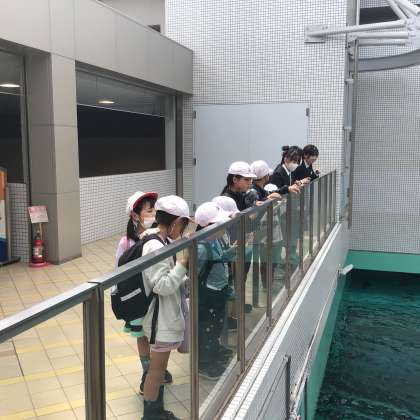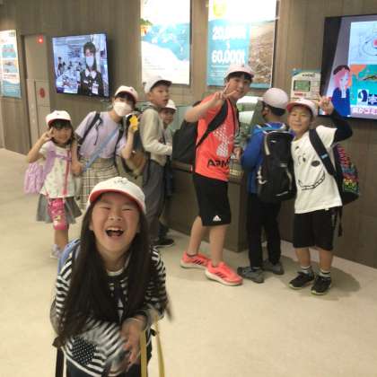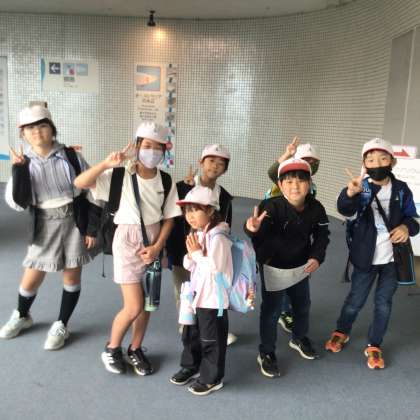 白い帽子が加納小の子。