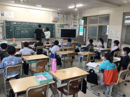 5年生 算数です。 少人数指導です。 少数のかけ算の筆算の計算。 積の小数点,どこに打つ?